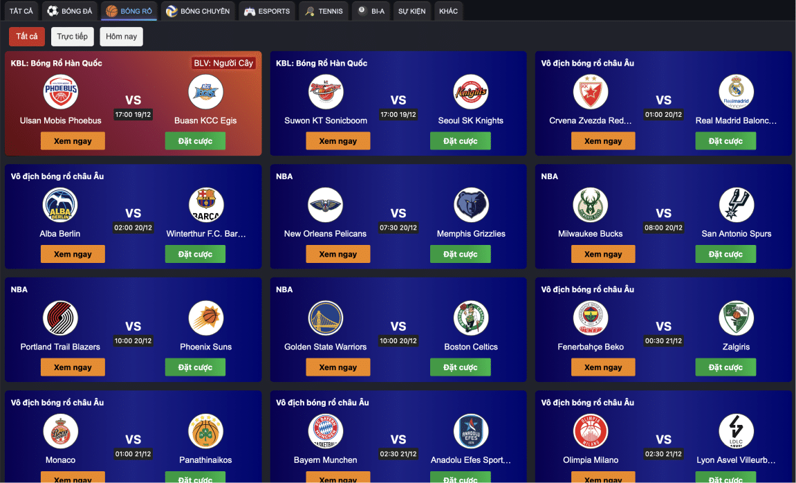 Đón xem các trận đấu bóng rổ hay nhất trên ThapCam TV với tốc độ cao. Xem các giải bóng rổ NBA, Euroleague, CBA… hàng đầu thế giới được bình luận trên ThapcamTV